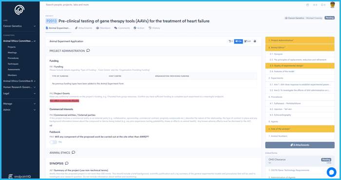 Traditional research ethics management involves large, cumbersome forms and manual approval processes that delay project start-up, increase administrative overheads, and frustrate users.